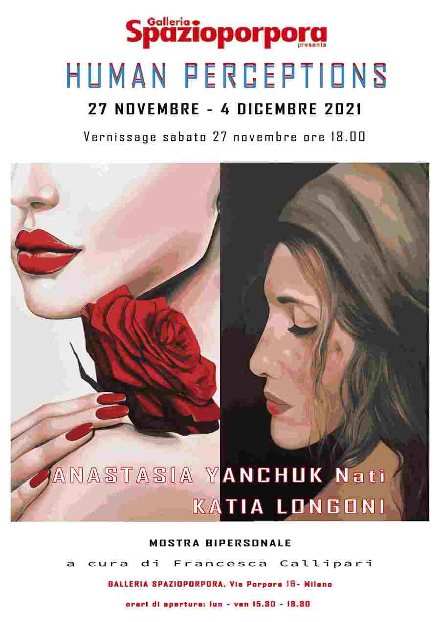 Sarà inaugurata sabato 27 novembre ore 18.00 la mostra "HUMAN PERCEPTIONS", bipersonale delle pittrici Anastasia Yanchuk in arte "Nati" e Katia Longoni, a cura dello storico e critico d'arte Francesca Callipari.
