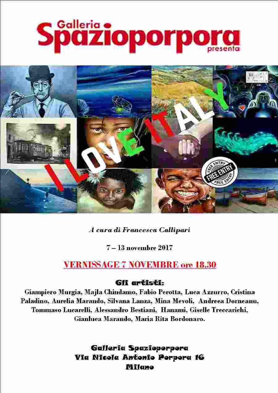 “I love Italy!” Quante volte abbiamo sentito pronunciare questa frase? I paesaggi, il buon cibo, il calore della gente, la bellezza dei monumenti e dell’arte, che da secoli caratterizzano questa nazione, sono solo alcune delle cose che rendono l’Italia una delle mete più amate dai turisti di tutto il mondo! In un epoca in cui il Bel paese è provato da un contesto economico non favorevole, ferito e messo in ginocchio dalla frequenza di calamità naturali che agli occhi del mondo continuano a trasmettere l’immagine di una nazione corrotta, fragile, decaduta, la Galleria Spazioporpora di Milano propone un evento volto a celebrare l’Italia e la creatività dal titolo “I Love Italy” .