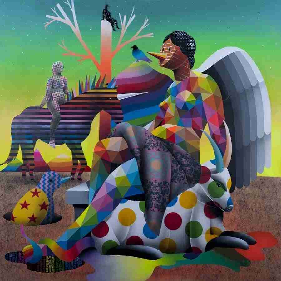 Okuda (Santander, 1980) è uno degli artisti più riconoscibili ed apprezzati dell’arte urbana contemporanea, le sue opere possono essere viste in strade e gallerie di tutto il mondo: Stati Uniti, Giappone, India, Mali, Mozambico, Cile, Brasile, Perù, Sud Africa, Messico e il continente europeo, tra gli altri. Poco prima della sua prima mostra presso MAGMA gallery tenutasi nel 2018, il Centre del Carme di Valencia gli dedica una grandiosa retrospettiva e nel 2016 la fiera ARCO Madrid gli commissiona un progetto di arte pubblica, mentre nel 2015, tra gli altri eventi, realizza Heads Juice per Expo Milano. Nel 2014 è tra i protagonisti della mostra realizzata dalla Fondazione Benetton al CAC di Malaga.