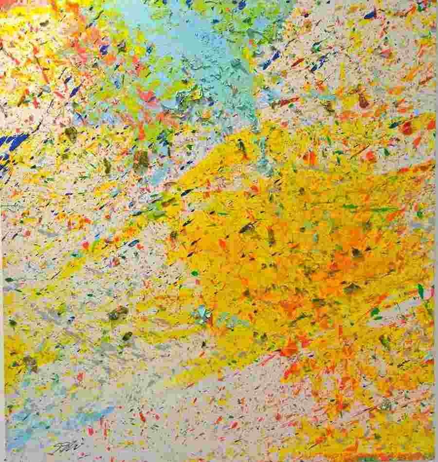 Shozo Shimamoto nasce ad Osaka, in Giappone, nel 1928. Co-fondatore del gruppo Gutai, insieme a Jiro Yoshihara, è stato uno degli artisti più sperimentatori del secondo dopoguerra. Il Gutai, primo movimento artistico radicale del Giappone, si sviluppa sul finire degli anni Cinquanta quasi in contemporanea all’arte informale europea e americana, con l’intento di rinnovare la tradizione artistica giapponese. Le prime sperimentazioni artistiche, gli Ana (Buchi), risalenti aalla fine degli anni quaranta, consistono in una serie di fogli di carta coperti da uno strato bianco di colore, su cui strofina il proprio corpo fino a creare degli squarci. Dopo aver frequentato assiduamente lo studio di Yoshihara, decide, insieme col maestro, di fondare il gruppo Gutai – Movimento d’Arte Concreta, nel 1954 A questi primi esperimenti segue Cannon Work, in cui colore è sparato sulla tela attraverso un piccolo cannone, opera che costituisce l’inizio del percorso dedicato alla liberazione casuale dell’espressività della materia. Da lì a poco Shimamoto sviluppa la tecnica del bottle crash, una pratica consistente nel lanciare bottiglie piene di colore sulla tela. L’opera diviene il risultato di un processo di relazione tra gesto e materia, tra azione e colore, il cui leitmotiv è la casualità e l’artista è attore e interprete di un’azione performativa che viene condivisa con il pubblico, testimone e completamento dello scenario di colore costruito dall’artista. Nel 1972, con la morte di Yoshihara, Shimamoto s’interessa alla Mail Art, pratica d’avanguardia che consta di invii di lettere, cartoline, buste e simili, innalzati al grado di artisticità da manipolazioni ad hoc e recapitati a uno o a più destinatari tramite posta. Shimamoto ne sviluppa una concezione personale: la sua testa rasata diviene il mezzo su cui scrivere, dipingere o apporre oggetti. Nel 1987 viene invitato dal Museo di Dallas a celebrare il centenario della nascita di Duchamp, per il quale proietta messaggi di pace e spezzoni di film sulla sua testa. Negli anni Novanta recupera la tecnica del Bottle Crash, riempiendola di nuovi significati, e realizza una serie di performances in America e in tutta Europa. Nel 2004 realizza una performance in elicottero come anticipazione della successiva Biennale di Venezia del 2005. Nel maggio 2006 la Fondazione Morra di Napoli ospita una performance “Un’arma per la Pace”, nella storica Piazza Dante, in cui l’artista giapponese getta una sfera piena di colori su una tela, sollevato dal braccio di una gru e accompagnato al pianoforte da Charlemagne Palestine. Muore ad Osaka nel 2013.
