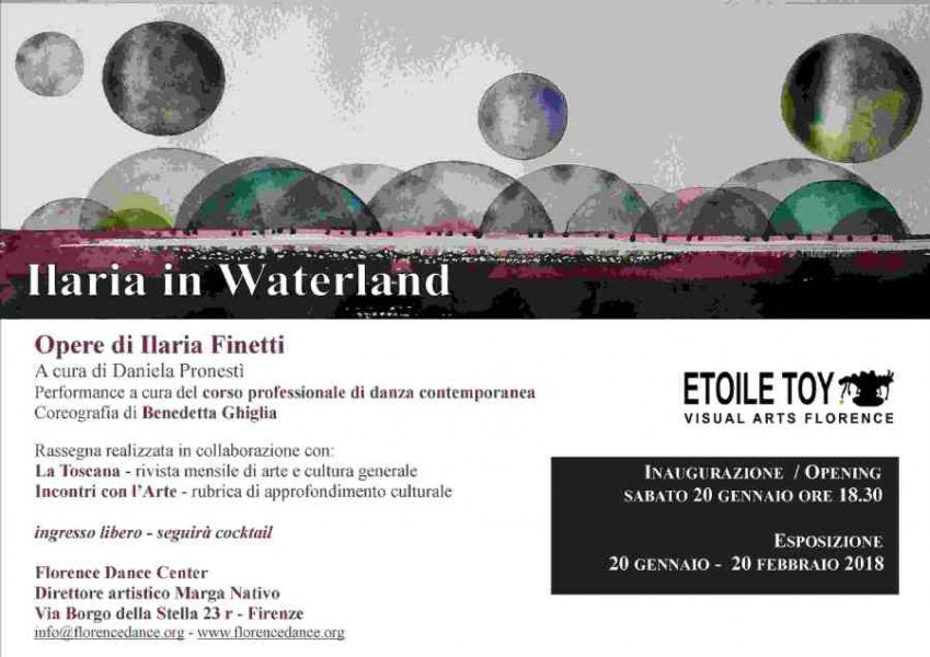 La rassegna prosegue con la mostra Ilaria in Waterland, personale di Ilaria Finetti. Liberamente ispirato al racconto di Lewis Carroll, il titolo pone l’accento sul tono evocativo e visionario delle opere dell’artista senese, il cui “viaggio” fantastico si svolge, in questo caso, in un mondo dominato dall’acqua e dalla sua forza generativa.