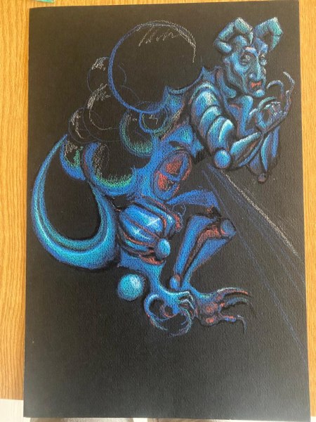 “Nella indefinita linea spazio-temporale, viaggiano le Illusorie distanze di Marta Pietrosanti. Al di là del cosmo e della categoria del tempo, che null’altro è se non relativa, ricordi, sogni, incubi memori di Goya, corpi che strizzano l’occhio a Schiele ed esperienze derivate da vite precedenti, concorrono alla creazione artistica, che altro non è se non sfogo e liberazione di ciò che preme per uscire e che, se non lo facesse, provocherebbe all’artista un inutile quanto doloroso carico emotivo. Le illusorie distanze, queste disparate immagini che compongono l’universo artistico di Marta, dense di simbolismo, sono lì a ricordarci che corpo e anima sono intimamente connessi e che l’uno non è che lo specchio rivelatore dell’altra. Partendo sempre dal blu, l’artista declina la sua tavolozza in una molteplicità cromatica intimamente connessa con lo spirito. Se il blu tende al verde, all’azzurro, al viola e all’indaco, come accade nei nudi e in “ricette per l’anima”, ossia composizioni per accendere un desiderio o svegliare la psiche da un torpore passivo, suggerisce anelito alla quiete, a una pace dei sensi raggiunta grazie a un movimento verso l’alto condotto da una mano delicata, che fa vibrare il pennello in linee morbide che avvolgono i soggetti come in un abbraccio. Se, invece, vira verso il nero, una luce fredda e una linea secca e spigolosa sono lì a svelare incubi, mostri che, una volta rappresentati, perdono la loro carica distruttiva per riequilibrare la vita interiore.