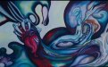C’è anche da dire che l’artista non si prende troppo sul serio e che, in un pirandelliano gioco delle maschere dove la vita è solo una farsa, l’arte ricopre un ruolo provocatorio, racconta se’ stessa attraverso immagini-specchio che saltano agli occhi dell’artista nei momenti più disparati o che le vengono in mente in un continuo scambio tra vista e psiche. Allora ecco immortalati momenti di intimità, ecco che dalla tela esce un Lucifero al banco di un bar che si guarda le unghie annoiato, ecco che l’arte è anche gioco, ironia, ecco che, prendendo illusorie distanze da tutto ciò che è reale, ne svela l’essenza”.