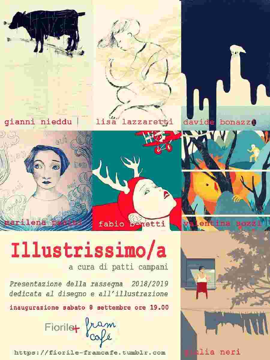 Presentazione della Rassegna espositiva 2018/19 curata da Patti Campani. Un progetto dedicato all'illustrazione e al disegno, legato ai temi dedicati all’ambiente, alla natura, allo stile di vita "aperto verso orizzonti che ci mantengano in sintonia con un ideale di benessere che non sia antropocentrico e che ci riporti, piuttosto, alla consapevolezza di essere una parte responsabile e partecipe di quanto ci circonda. Ho scelto sette autori con poetiche e tecniche diverse per tenere ampio lo sguardo e dare l’attenzione dovuta alla capacità di sintesi e all’incisività immediata propri del disegno. Racconti brevi a narrare. Temi e autori che mi paiono particolarmente in consonanza col carattere dedicato e dichiarato del FramCafè e di chi lo frequenta -