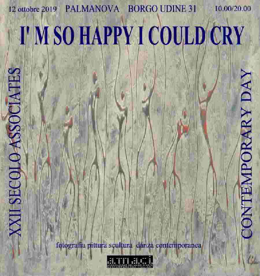 Nel locale storico sede dell'Associazione Culturale XXII Secolo un' esposizione di artisti contemporanei dove si potranno ammirare diverse tecniche di pittura, fotografia e scultura, "I'm so happy I could cry" vuol essere un momento di felicità. A pochi passi dalla Galleria nella zona pedonale del borgo verranno installate solo nella giornata di sabato 12 ottobre le sculture di Marina Battistella, Elena Clelia Budai, Claudio Colaone e Marco Mantesso che faranno da cornice ad una performance di danza contemporanea alle ore 17.30 dal titolo "Relation" di Elisa D'Ambrogio e Jorge Rizzardi.