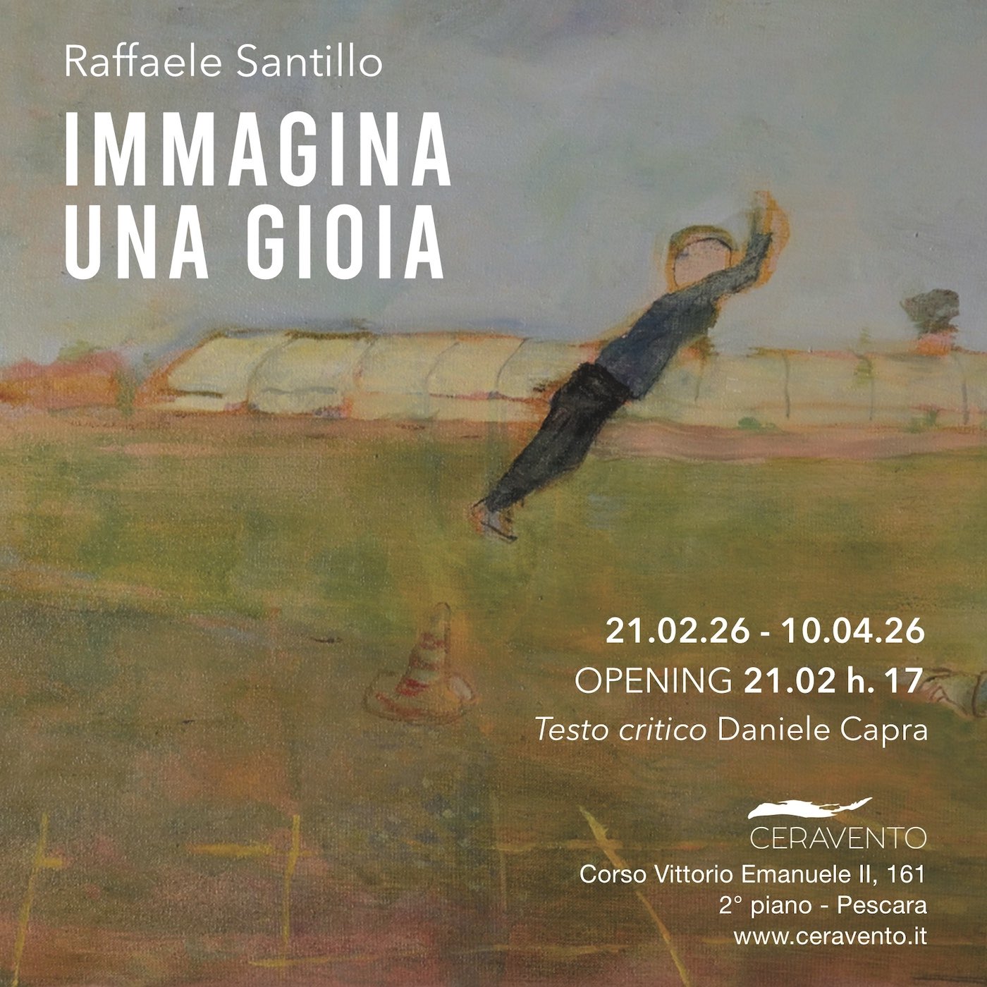 Ceravento è lieta di presentare la personale di Raffaele Santillo Immagina una gioia. La mostra è costituita da una ventina di recenti dipinti su tela, che spaziano dalla piccola alla grande dimensione, ed è accompagnata da un testo critico di Daniele Capra. L’opening si terrà sabato 21 febbraio alle ore 17, alla presenza dell’artista, e la mostra sarà poi visibile fino al 10 aprile, da martedì a venerdì dalle ore 15 alle 19 o il sabato su appuntamento.