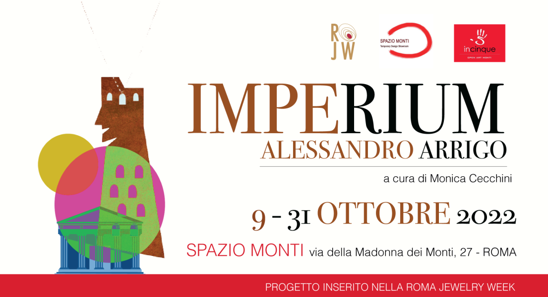 Spazio Monti in via Madonna dei Monti 27 ospita il progetto IMPERIUM di Alessandro Arrigo a cura di Monica Cecchini. Il progetto è inserito nella Roma Jewelry Week 2022 (RJW), la settimana interamente dedicata alla promozione e alla valorizzazione del gioiello contemporaneo.