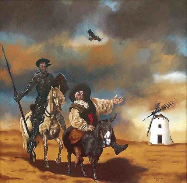 Li ho riversati poi su quadri, incisioni e disegni; la mia via di espressione, il figurativo. Per tradurre il pensiero cervantesco mi sono documentato e avvalso dell'opera sia di pittori, quali Nani Tedeschi, Joaquin Turina, Manuel Castellano sia di quella dell'incisore Gustave Doré e in particolar modo poi delle illustrazioni di Vietar G. Ambrus.