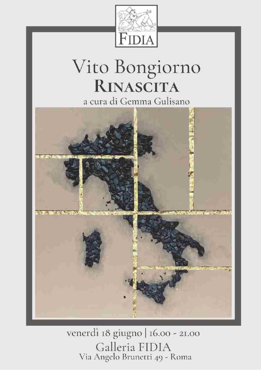 Venerdì 18 giugno 2021 dalle ore 16.00 alle ore 21.00 gli spazi della Galleria Fidia di Fausto Fiume faranno da vetrina alle Mappe di Vito Bongiorno, una nuova serie di lavori accompagnati da un'azione performativa che l'artista presenterà al pubblico in occasione dell'evento inaugurale della mostra Rinascita a cura di Gemma Gulisano.