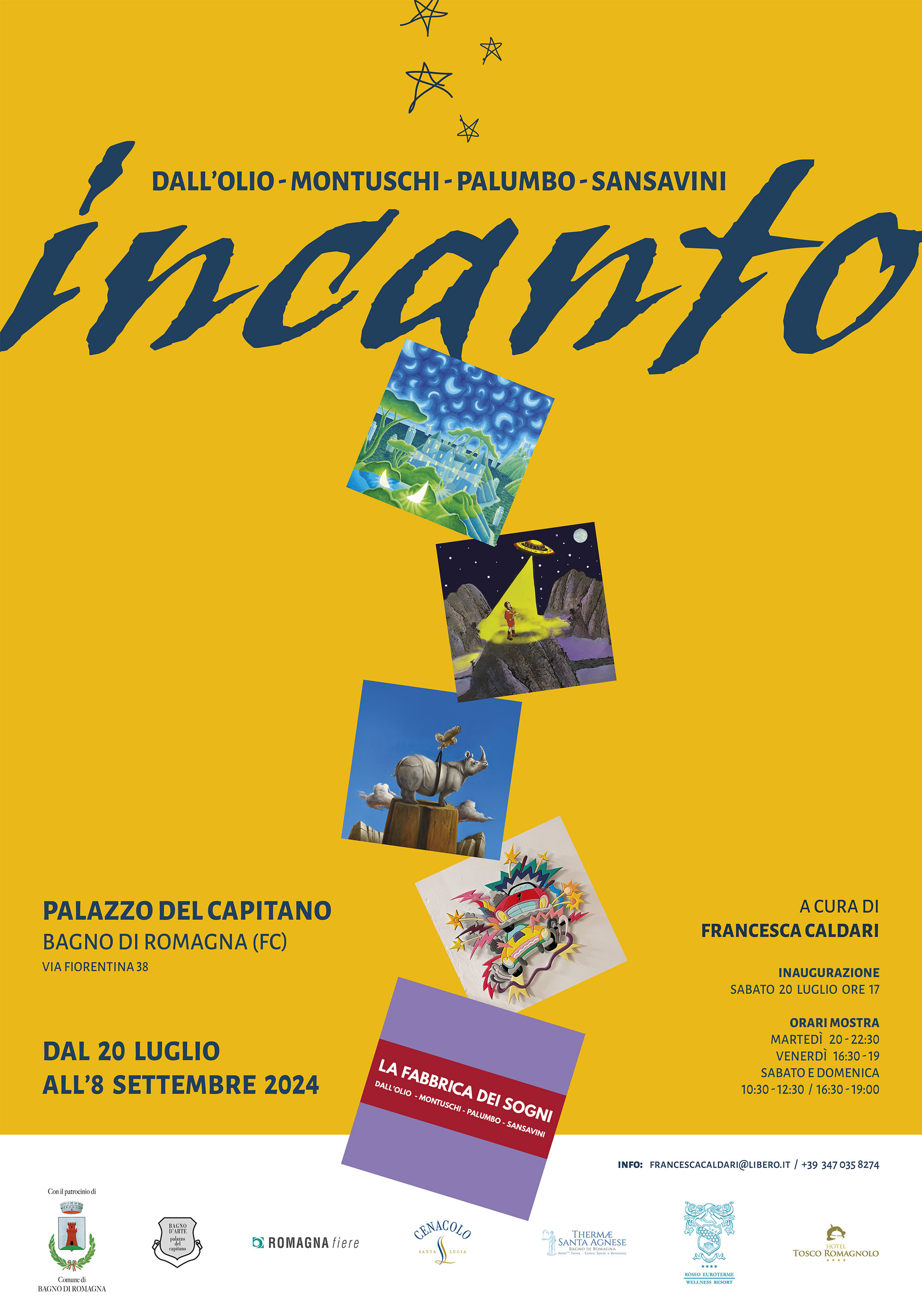 Palazzo del Capitano presenta come secondo appuntamento espositivo di Bagno d’Arte la mostra Incanto opere di Dall’Olio - Montuschi - Palumbo - Sansavini , promossa e patrocinata dal Comune di Bagno di Romagna e curata da Francesca Caldari.