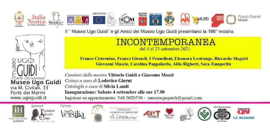 La mostra INCONTEMPORANEA nasce da un’idea di Silvia Landi, curatrice dei libri - cataloghi di tutti gli artisti. La curatela al Museo Ugo Guidi di Forte dei Marmi, via Matteo Civitali 33 è di Vittorio Guidi e di Giacomo Mozzi.