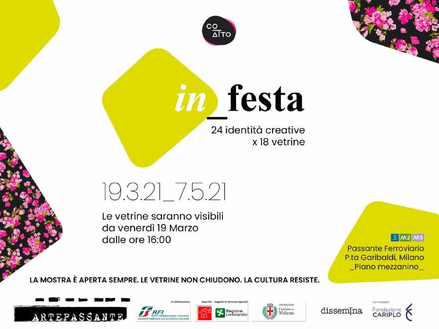 Il 19 marzo 2021 dalle ore 16.00 inaugura in_festa, prima mostra di co_atto, il nuovo project space milanese, che si articola in 18 vetrine nella stazione Porta