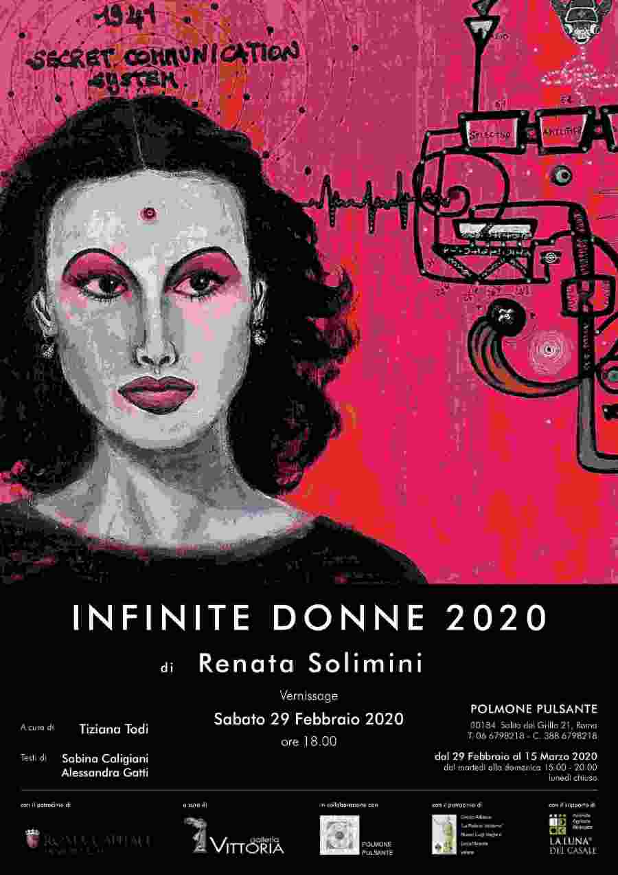 “Infinite Donne 2020”, la mostra di Renata Solimini a cura di Tiziana Todi, sarà inaugurata a Roma il 29 Febbraio 2020 alle 18.00 presso il Polmone Pulsante, Salita del Grillo 21, fino al 15 marzo 2020, terza tappa della mostra itinerante. La manifestazione è patrocinata da Roma Capitale I Municipio e dal Circolo Artistico “La Pallade Veliterna” Museo Luigi Magni e Lucia Mirisola, Velletri.