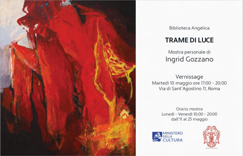 Martedì 10 maggio 2022 alle ore 17.00 inaugura la mostra Trame di luce di Ingrid Gozzano, a cura di Costanza Barbieri, presso le sale della Galleria della Biblioteca Angelica (MiBACT), prestigioso spazio adibito alle esposizioni di arte contemporanea: in mostra circa trenta opere, realizzate fra il 2008 e il 2022, che, pur rimanendo saldamente ancorate al mondo reale, si pongono ai confini fra il figurativo e l’astratto.