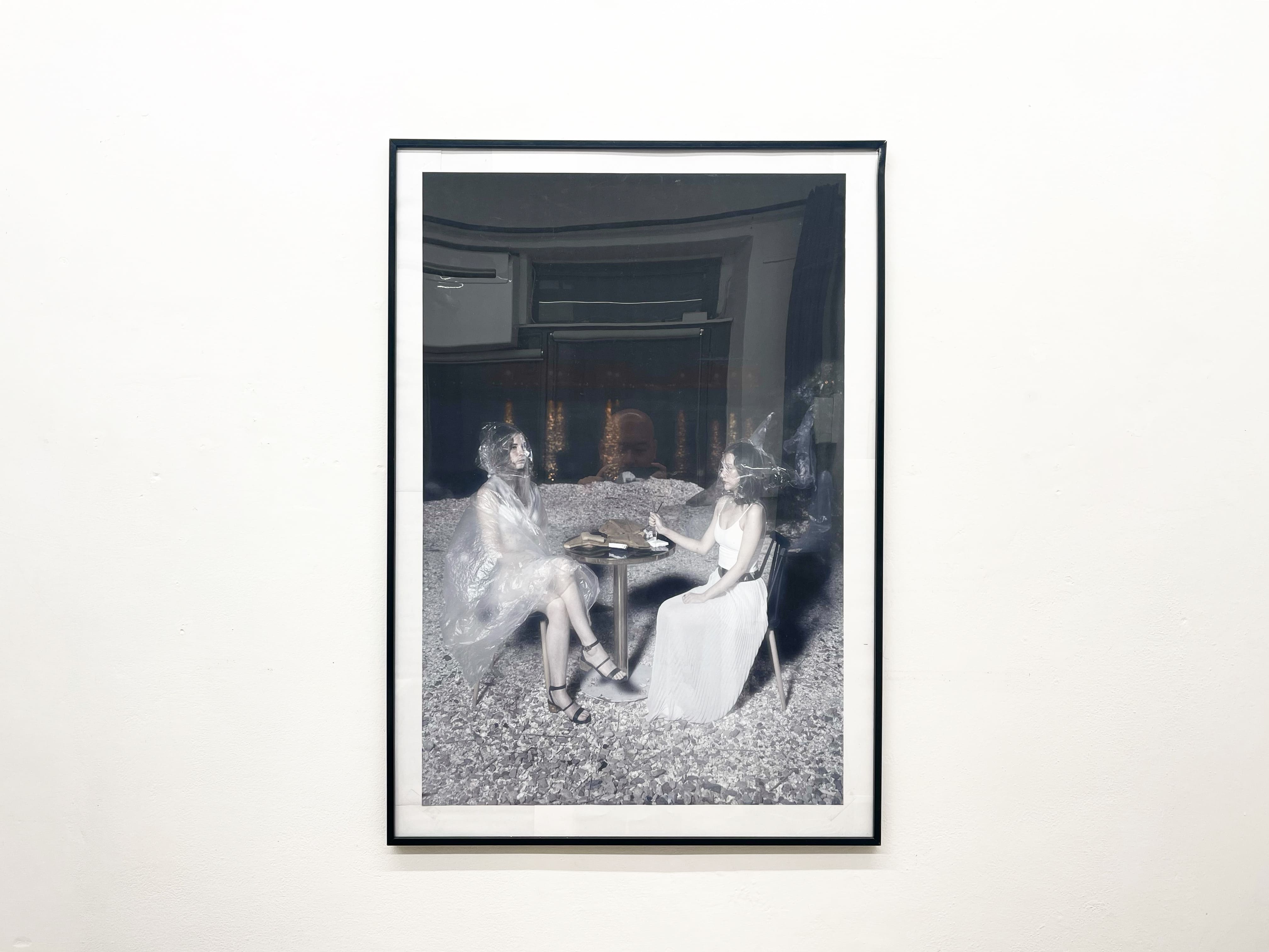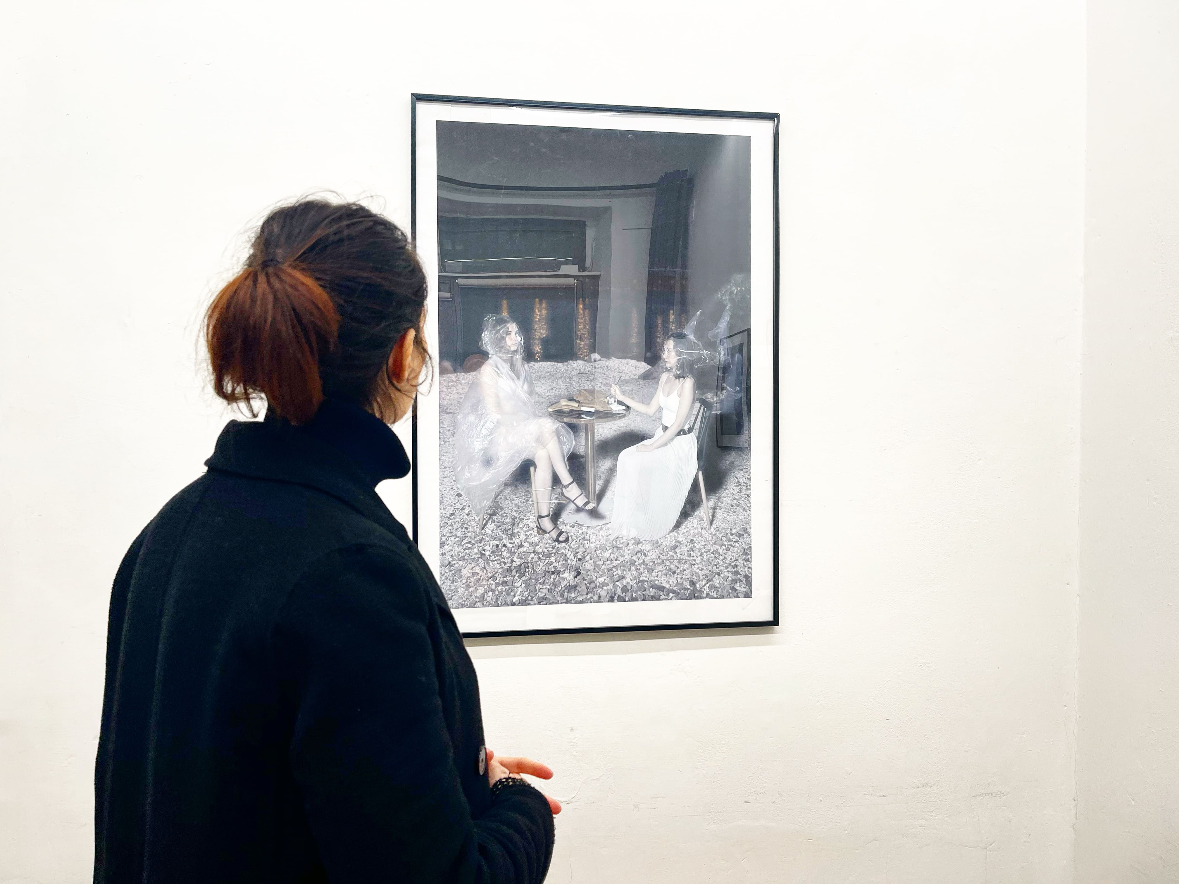 Zhi Hongbo pare aver sottratto le forme rappresentate da scene filmiche, ambientazioni dinamiche in cui i diversi personaggi vivono il contrasto del tempo, inseriti in luoghi che non possono proteggerli: inospitali interni, improbabili zattere dove l'uomo non appare salvo, ma c'è il senso del movimento in queste immagini attraversate dall'aria. Zhi Hongbo dà forma a dei sogni, in fondo, capaci di creare nell'occhio dell'osservatore il brivido dell'evasione. Guo Lin esaspera ancor di più la visione di Zhi Hongbo poichè il corpo femminile sostiene umiliazioni profonde attraverso un registro che appare a volte surreale, nell'uso implacabile del bianco e nero. Il "non" colore dona ad alcuni dettagli una forza ed una eleganza intrigante attraverso il sapiente uso della luce: è il dettaglio che esalta, che cattura la forma, che stordisce e che porta a leggere queste storie fatte di immagini che recitano a volte con beffarda ironia, ricca di interrogativi che parlano del nostro inquieto tempo.