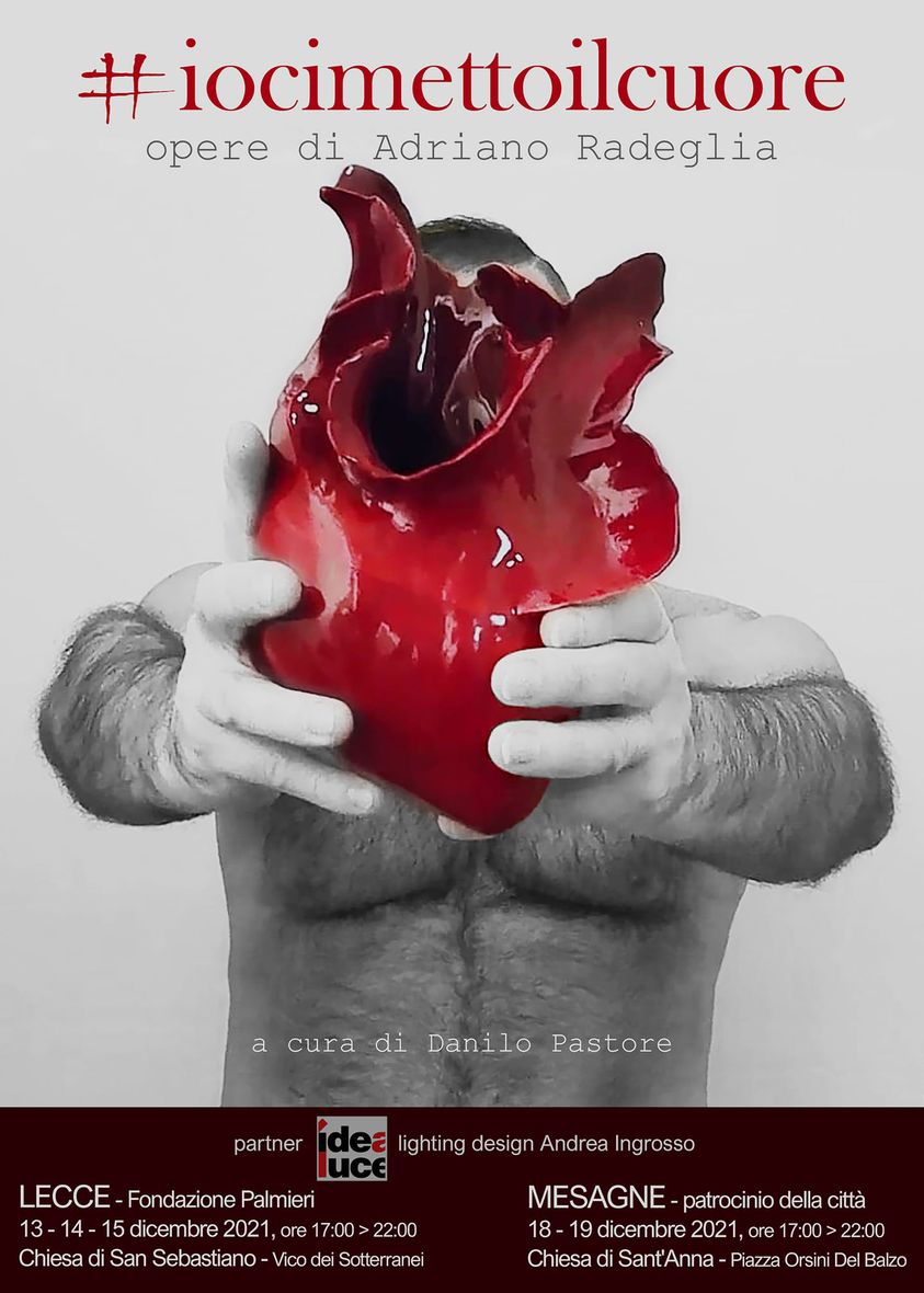 Due città ospiteranno le opere di Radeglia in due luoghi sacri; l'ex Chiesa di San Sebastiano a Lecce - oggi Fondazione Palmieri - e sul portale e Sagrato della Chiesa di Sant'Anna a Mesagne.
