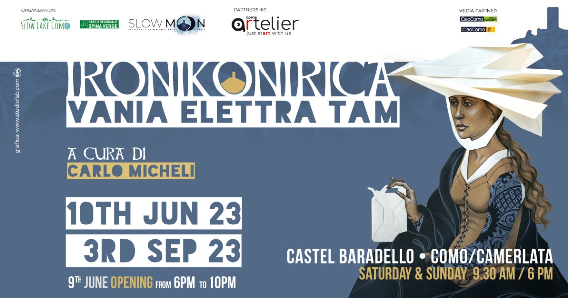 Baradello Art Lab, Parco Spina Verde, Slow Lake Como e Slow Moon hanno il piacere di annunciare la prossima esposizione di arte contemporanea, terzo appuntamento della stagione 2023. Dopo i successi delle prime due mostre «di aria, di acqua, di terre» di Vittoria Monico e Giuseppina Martines e «Black Wave» di Carlo Pozzoni e Francesca Gamba, è ora la volta di «IRONIKONIRICA» di Vania Elettra Tam che inaugura il mese dedicato alla bellezza.