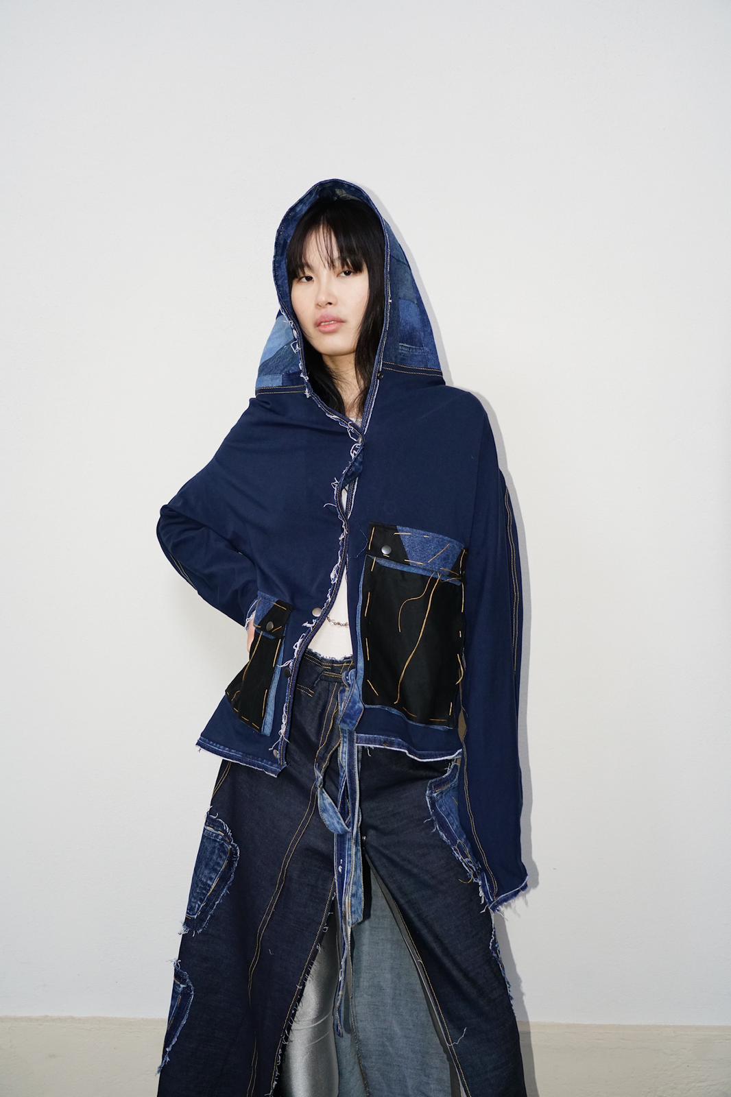 La visione creativa di Derek Nahakpam è una poesia disinibita che rompe i confini della moda convenzionale. I suoi modelli, basati sul tema dell'anticonformismo, utilizzano il denim irregolare come simbolo di individualità e libertà, ispirandosi alle parole di Walt Whitman: “Esisto come sono, e questo è sufficiente”. Il suo lavoro esplora audacemente la forma, rendendo ogni bottone una chiave per trasformare gli abiti, mescolando memoria e desiderio.
