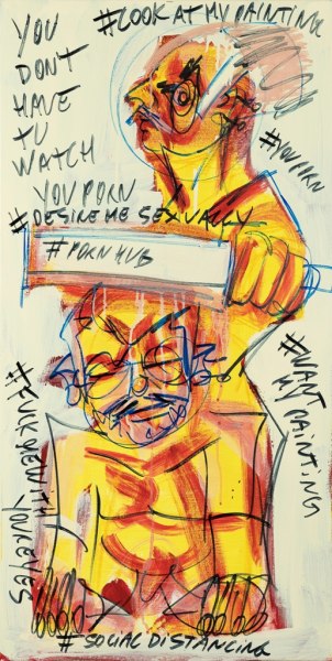 Social Distancing pone una serie d'interrogativi sulla squalifica sociale e intellettuale del ruolo critico dell'artista nei confronti della società, ma evidenzia anche come questo abbia declassato il ruolo del gallerista e quello di tutte le figure intermediarie dell’arte contemporanea. Questo a fronte di un ipertrofica crescita del ruolo dello spettatore, autoreferenziale e impreparato alla ricezione/comprensione dell'arte: “Lockdown e distanziamento sociale hanno ampliato gli introiti economici di portali come Youporn e Pornhub, che allontanano da qualsiasi modalità empatica e sensoriale di relazione. Dove non c'è empatia, regna il culto dell'immagine e della rappresentazione, crolla l'interesse verso l'arte, diminuisce il fascino dell'artista e lo spettatore vive inerme davanti a immagini retoriche imposte, privo di difese immunitarie critiche”. (Di Caterino).