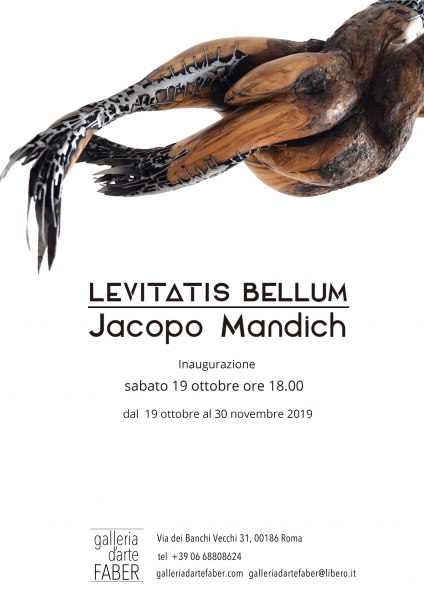 Sabato 19 ottobre ore 18.00 la galleria d'arte FABER ospiterà la mostra LEVITATIS BELLUM di Jacopo Mandich, terzo appuntamento della pentalogia FORZE INVISIBILI. Il progetto Forze invisibili di Jacopo Mandich è costituito da 5 sezioni che formano un vero e proprio viaggio interiore e sociale. “Un'indagine che mette in relazione i sistemi galattici e la rete sinaptica, la dimensione sub-atomica e la materia oscura, la teoria dell'indeterminazione delle particelle e l'analisi dei meccanismi collettivi, sottolineando quanto la percezione e la materia siano influenzate da forze invisibili e quanto la definizione di realtà sia relativa e ancora da scoprire e riscrivere”.