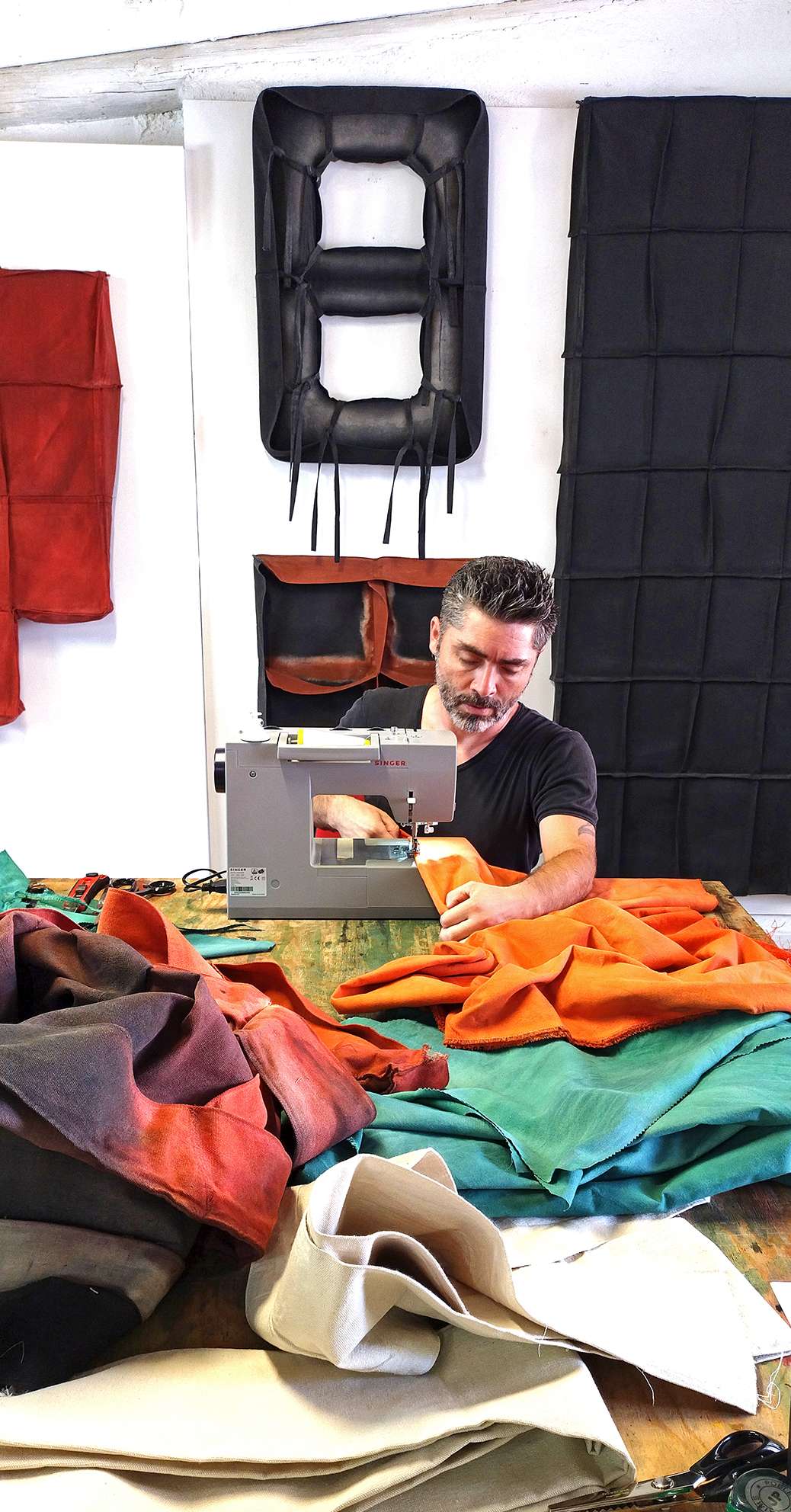 “L’artista concepisce strutture formali essenziali, che man mano cambiano conformazione in base al processo di formazione delle singole opere stesse.- spiega il curatore Lorenzo Madaro - Poblete negli ultimi anni ha sostituito il gesto diretto della pittura attraverso specifici bagni cromatici, includendo un senso di accidentalità, considerando cuciture, slittamenti, incontri tra materiale tessile grezzo e pieghe come parte primaria della propria indagine: sono opere che da un lato ereditano uno stile formale di area minimalista, ma sempre mediato con un approccio visuale proveniente da culture precolombiane; e dall’altro divengono delle nuove architetture senza tempo da osservare, concentrandosi sulla radice primaria non solo della forma, ma anche della materia stessa, che diventa così una sorta di pelle capace ogni volta di cambiare conformazione in relazione ai contesti in cui viene installata.”