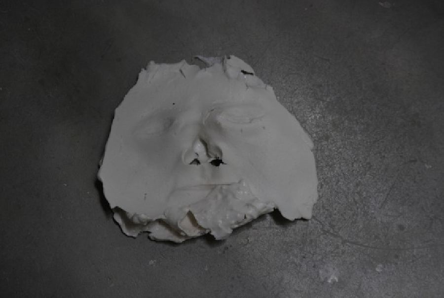 Nel video, l’inquadratura fissa riproduce un atto performativo minimale: l’artista scuote la testa tenendo in bocca tra i denti una maschera in alginato bianco che raffigura il gemello corrotto, l’ombra da reintegrare. L’azione richiama le movenze di un cane in cerca di carezze, di attenzione e approvazione.