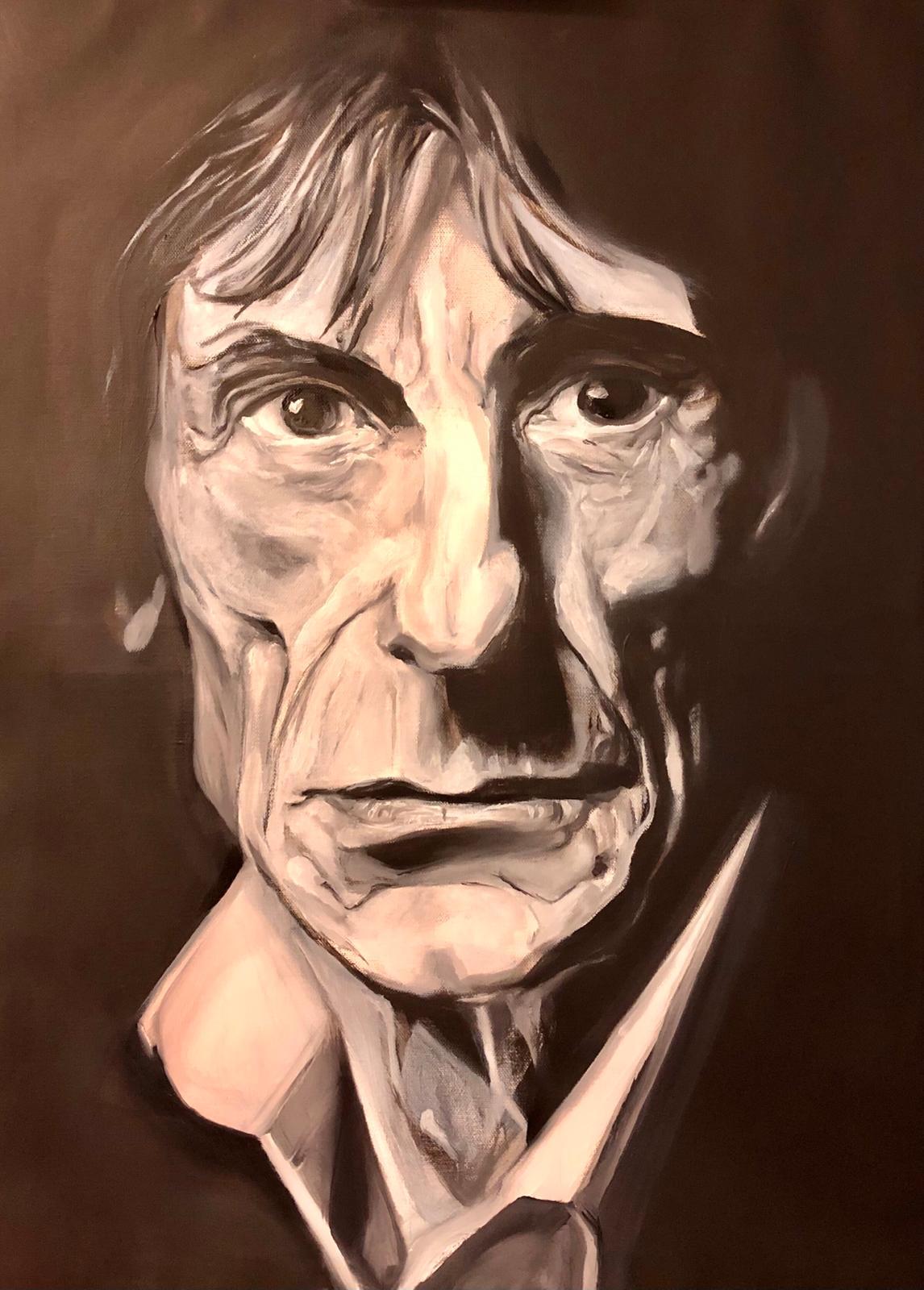 trasmette i suoi stati d’animo sulle tele raccontandosi senza filtri attraverso i volti delle rock star