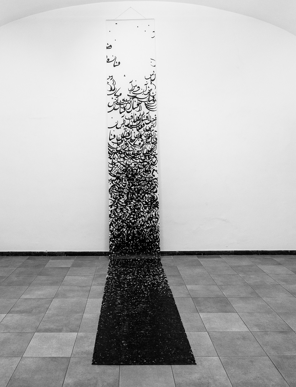 In mostra una selezione di lavori che testimoniano i tratti salienti della sua ricerca. Bahar Hamzehpour in molte sue opere si serve di parole che si sovrappongono e si infittiscono sempre di più, fino a creare dei grovigli neri e indistinti di pigmento concentrato, ma soprattutto realizza composizioni nelle quali il linguaggio esprime la notevole complessità della comunicazione, la necessità di esplorare il proprio io e l'inevitabile sfida di riuscire a farlo in modo profondo. L’artista concepisce opere composte da gesti e segni attraverso i quali emergono immagini che hanno molto a che fare con lo sprigionamento di energia compressa, emissioni quasi inarrestabili di forze finalmente liberate. In altri termini rappresentano delle manifestazioni che incarnano una visione di disfacimento e di conseguente riscatto finale. La fase processuale in questo suo operare è determinante.