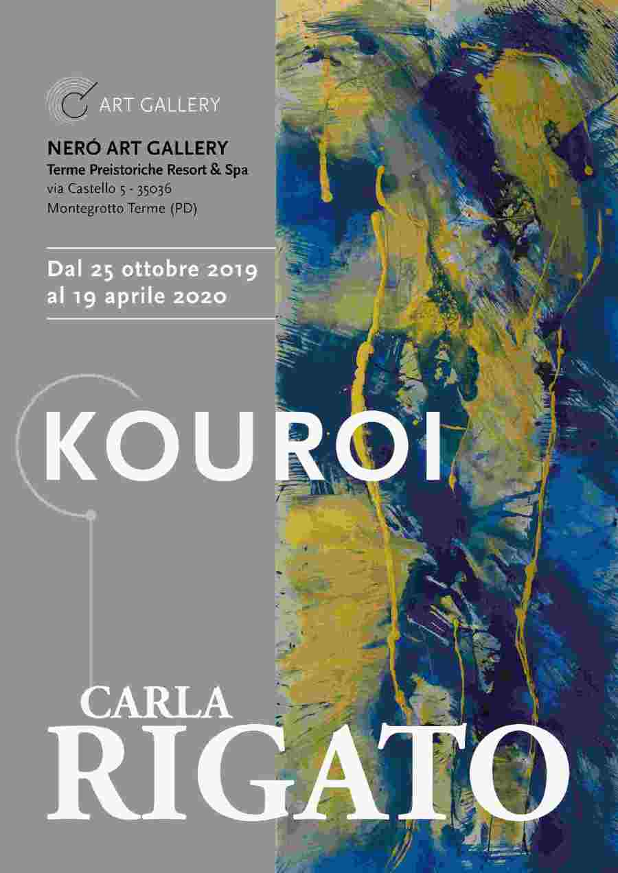 “Kouroi” presenta otto tele di grandi dimensioni pensate e realizzate da Carla Rigato appositamente per essere inserite nello spazio della Neró Art Gallery. «Otto “ragazzi”, lei li chiama così - spiega la curatrice Antonietta Grandesso – che sono il risultato non solo di anni di lavoro e di studio, ma in particolare anche di una riflessione sulla bellezza e sull’armonia: i suoi Kouroi.».