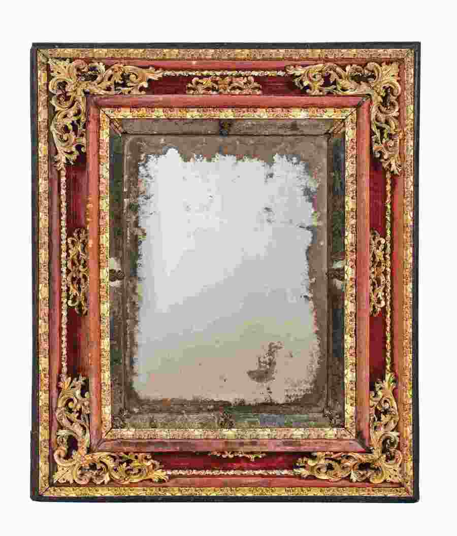 Gli altri due esempi sono datati al XVIII secolo: una CORNICE di forma rettangolare è dorata e laccata con motivi di ramage fioriti che sono interrotti agli angoli da grandi foglie d’acanto in rilievo, così come importante è la cimasa, la richiesta è di 800/1.200 euro, mentre è di 6.000/9.000 euro quella per l’altra CORNICE settecentesca in legno ebanizzato, decorato da bouquet di fiori dorati e in madreperla, all’interno di fasce modanate in oro, agli angoli sono applicati grandi volute con motivi di foglie.