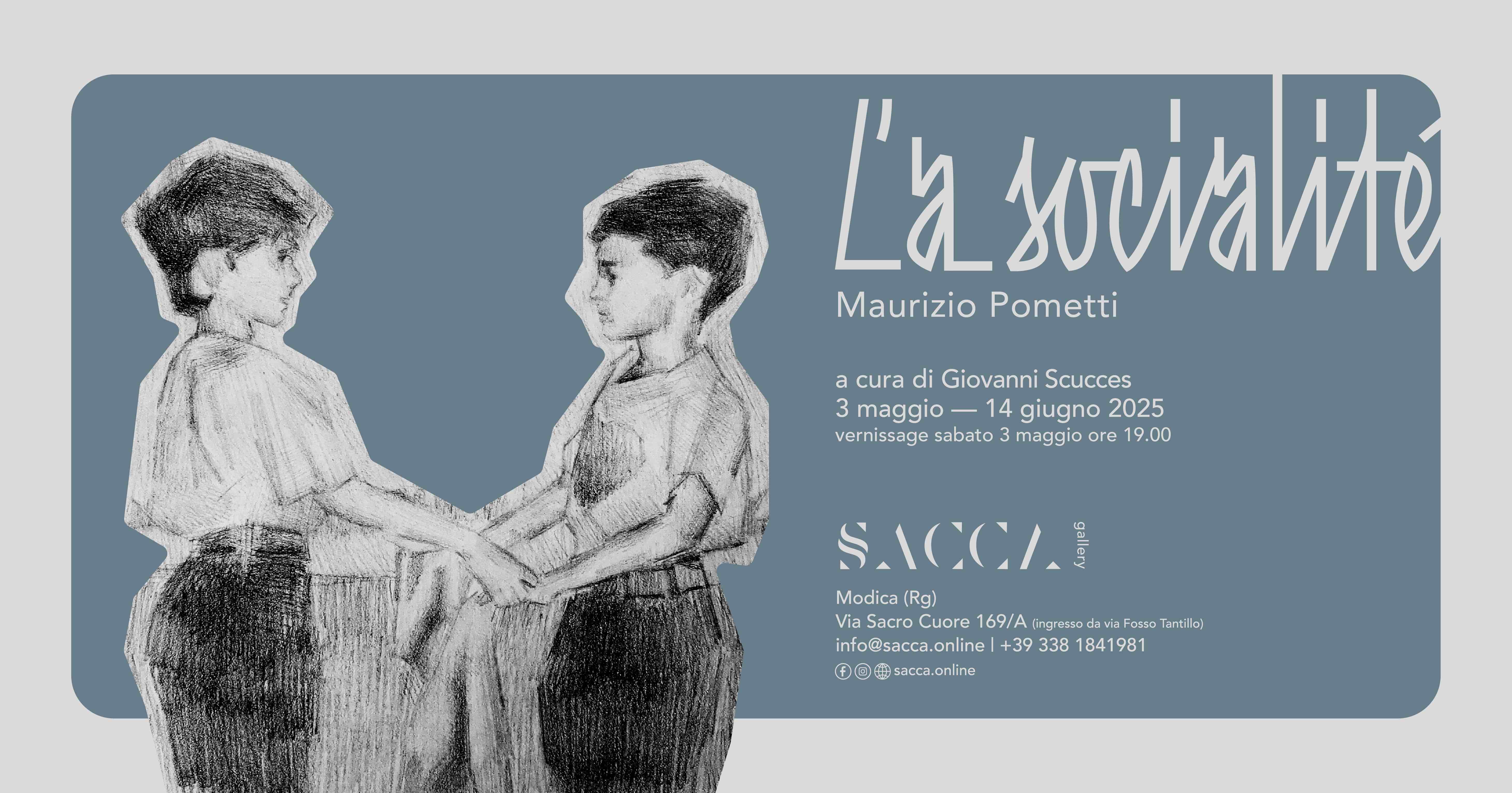 Con la mostra “L’A_SOCIALITÉ”, titolo graficamente e foneticamente ambivalente e antitetico, il curatore Giovanni Scucces e la sua galleria d’arte SACCA presentano a Modica una personale dell’artista Maurizio Pometti (Catania, 1987). L’opening, alla presenza dell’artista, è fissato per sabato 3 maggio alle ore 19