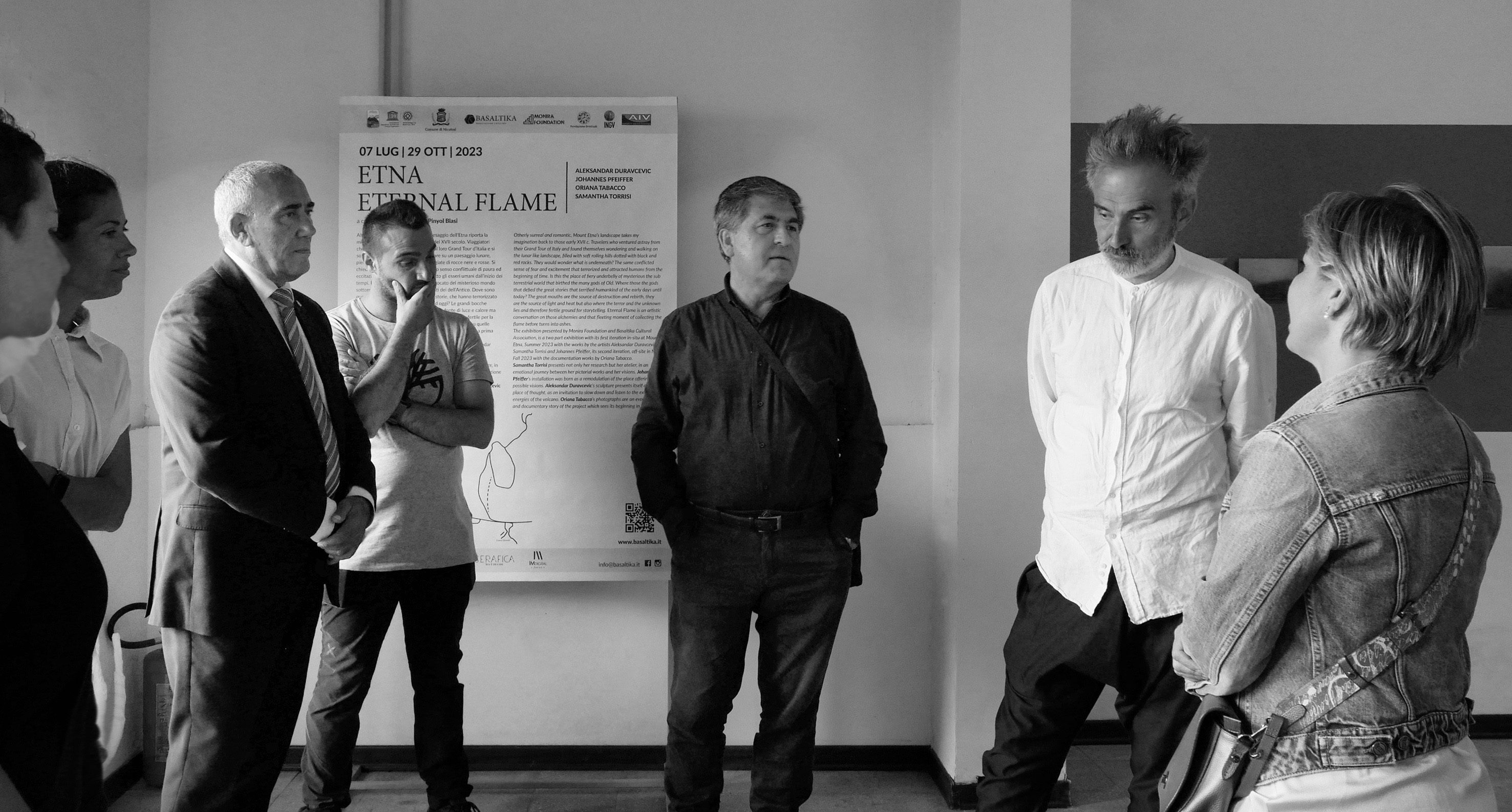«Etna Eternal Flame – chiarisce la curatrice della mostra, Ysabel Pinyol Blasi - è una conversazione artistica su quelle alchimie e su quel fugace momento in cui si coglie la fiamma prima che si trasformi in cenere. La mostra presenta opere degli artisti contemporanei: Aleksandar Duravcevic, Johannes Pfeiffer, Samantha Torrisi in dialogo con le immagini fotografiche di Oriana Tabacco».