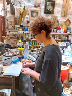 Istintivamente memore della linfa creativa dei genitori, Monica si avvale di molteplici e sofisticate tecniche - acquisite nel corso del tempo all'Istituto d'arte di Trieste, dove si diploma nel 1994, e nel 2008 con l’apprendimento dell’acquaforte all’Università Popolare -, rielaborate e sperimentate poi da sola nel suo fascinoso atelier di via Vasari 19: una sorta di “laboratorio delle fiabe” che condivide con il marito Gabriele Pistrin, musicista, attore e falegname d’arte, che collabora spesso anche progettualmente alla realizzazione delle opere della moglie. Uno spazio da visitare, ricco di spunti, di ricerca e di energie, in cui si respira il contemporaneo ma anche un modus operandi d'altri tempi, sottolineato da un sottile, naturale richiamo a un’atmosfera da bohème. In tal modo il fruitore viene orientato verso un universo onirico, surreale e simbolico, che lo distoglie dai ritmi troppo frenetici della vita contemporanea ed è forse anche per questo motivo che le opere dell'artista sono così apprezzate dal pubblico e dalla critica.