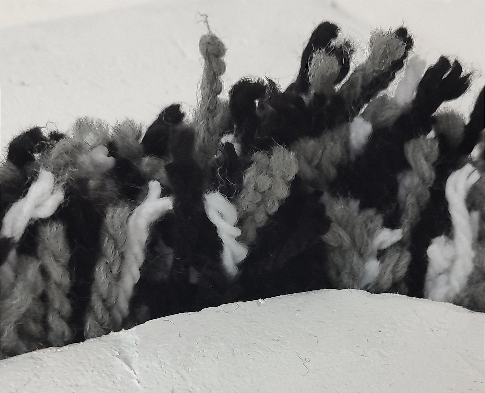 La Biennale LeArtiPossibili 2022 “LANA – dal bianco al nero” ha registrato una grande partecipazione, a testimonianza della volontà di mettersi in gioco in uno spazio interdisciplinare e “altro” in cui le divisioni e le categorizzazioni vengono abbandonate per lasciar posto al piacere della partecipazione e della condivisione. 134 le adesioni, di cui 92 individuali e 42 di gruppo, grazie alla presenza di artisti, terapisti, Centri Diurni per Disabili, RSA, istituti scolastici e gruppi di tessitori provenienti da tutta la Lombardia, dal Lazio, dal Veneto e dalla Sardegna. Le opere, omogenee per dimensioni e materiale impiegato, variano cromaticamente dalle tonalità del bianco a quelle del nero per esprimere la vasta gamma di sensazioni che un unico materiale può trasmettere. Una ricchezza che si manifesta anche nella tipologia di lavorazione della lana che nelle opere esposte si trova filata, cardata, pettinata, intrecciata, infeltrita o raggomitolata, lavorata a maglia o uncinetto, impiegata spessa o fina, grezza o tinta.