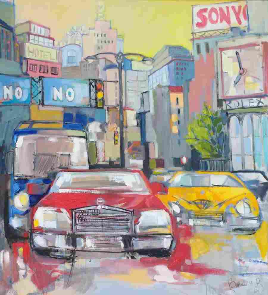Roberto Bordin (TV): Nato a Mestre, ma residente a Mogliano Veneto, in provincia di Treviso, Bordin è un artista dal lungo e interessante curriculum, con mostre prestigiose tenute in tutta Italia ed è ben conosciuto anche qui a Piacenza dove ritorna spesso e dove vanta un nutrito numero di estimatori. Personaggio a tutto tondo, Bordin sente e vive la pittura come elemento fondamentale dell’esistenza per cui tutto ciò che vede e sente diventa facilmente elemento di descrizione, momento creativo, poetico straniamento. Inoltre, ha dalla sua parte una grande capacità di sintesi, velocità d’esecuzione e poi, ancora, quella particolare sensibilità interpretativa che riesce a trasmettere poesia anche alle cose più umili e semplici. Anche le sue tematiche sono svariate, ma l’artista veneto sente e vive in modo particolare il paesaggio urbano che sa descrivere con grande naturalezza cogliendo la frenesia dei nostri giorni, il caos metropolitano, la geometria delle moderne architetture, la vivacità delle insegne luminose, icone statiche ma onnipresenti dell’odierna realtà. Pittura che riesce a rendere, con grande immediatezza, la dimensione realistica della città, i momenti della giornata, i riti, più o meno borghesi, di una vita scandita da orari, abitudini ed azioni che si ripetono con ossessiva continuità, in un rapporto alienante e di prolungata frustrazione.