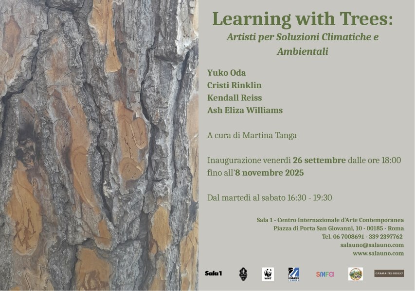 Sala 1 è lieta di presentare la mostra Learning with Trees. Artisti per Soluzioni Climatiche e Ambientali con le artiste di Boston, Stati Uniti, Yuko Oda, Kendall Reiss, Cristi Rinklin, Ash Eliza Williams a cura di Martina Tanga. Le artiste hanno osservato e comunicato con gli alberi, traducendo ciò che hanno imparato attraverso il potere della creatività e dell'immaginazione in nuove opere d'arte che hanno generato il corpus della mostra.