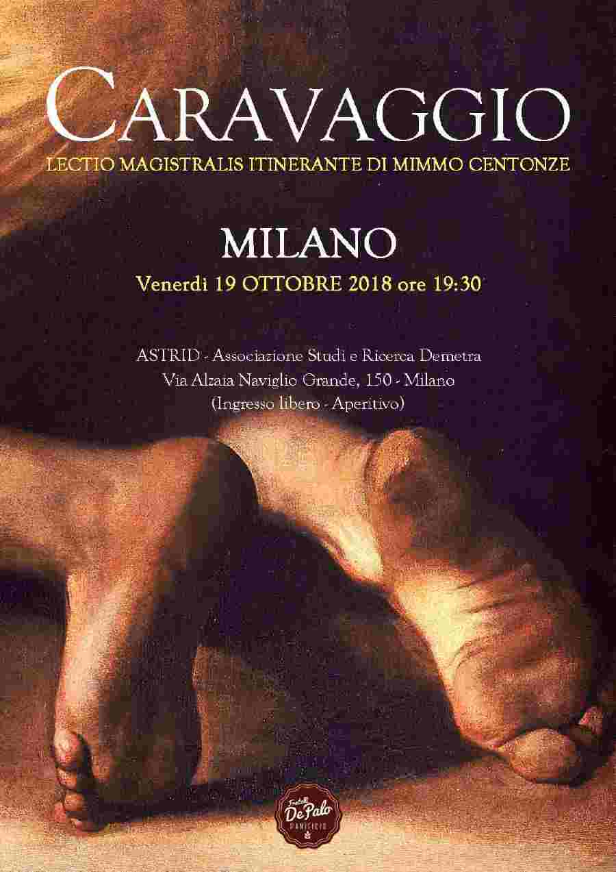 Dopo il successo di pubblico e il grande entusiasmo raccolto finora nelle precedenti tappe, la Lectio Magistralis itinerante di Mimmo Centonze su Caravaggio arriva anche a Milano, venerdì 19 ottobre 2018 alle ore 19:30 negli spazi di ASTRID, l'Associazione Studi e Ricerca Demetra, all'interno della Cascina San Cristoforo, in via Alzaia Naviglio Grande 150.