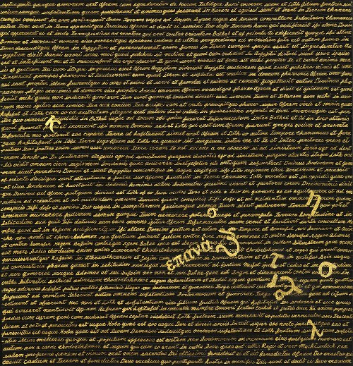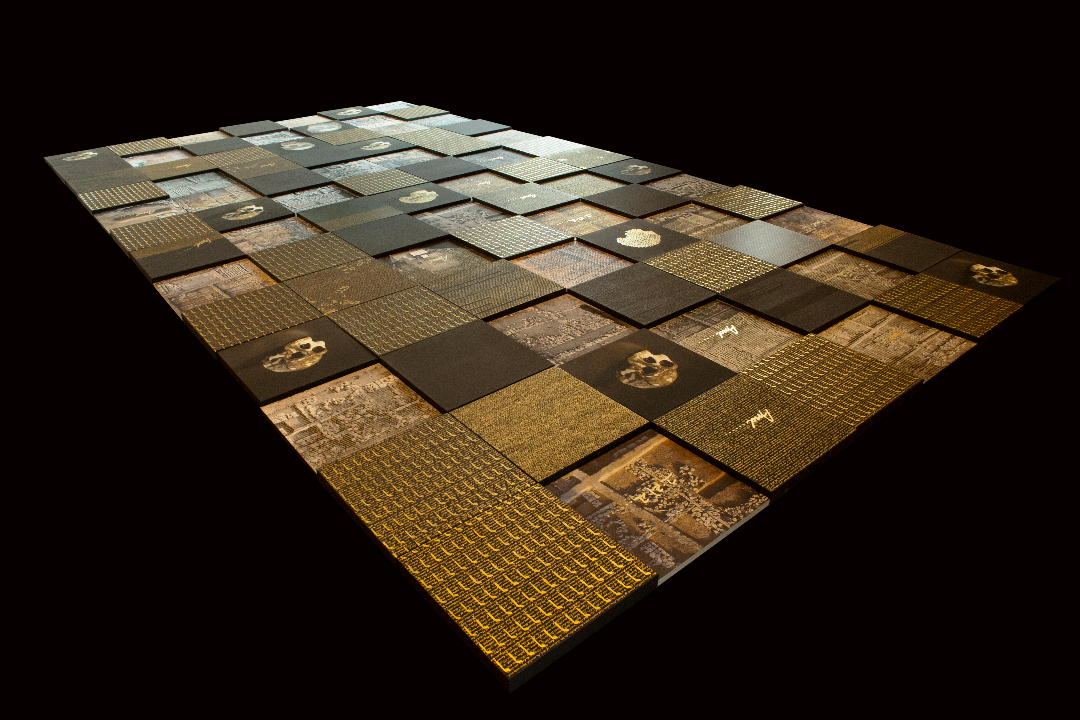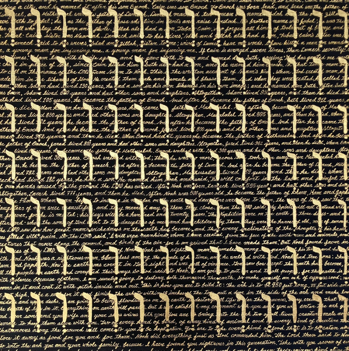 L’esposizione raccoglie un insieme di trentasei dipinti, realizzati trascrivendo in polvere d’oro a 24k frasi dalla Genesi della Bibbia e da altre fonti religiose non cristiane, come il buddista Sutra del Diamante, tradotte in diverse lingue quali Latino, Greco, Ebraico, Inglese e Coreano.