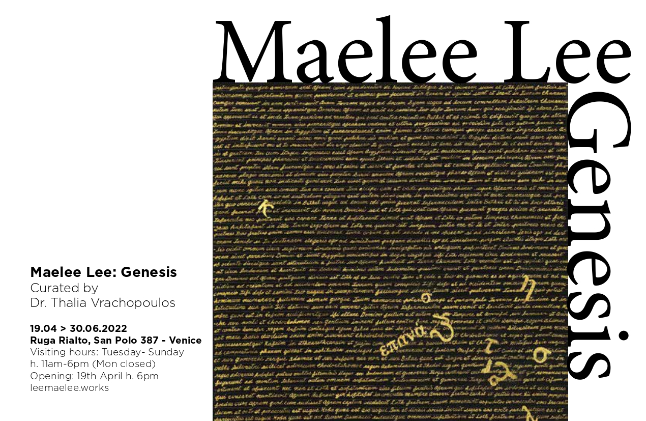 Martedì 19 aprile, ore 18, inaugura la mostra personale Genesis, dell’artista sudcoreana Lee Maelee (1963, Repubblica di Corea), organizzata dalla curatrice ed esperta di arte asiatica, nota a livello internazionale, Thalia Vrachopoulos, visitabile fino al 28 giugno 2022 presso la Galleria San Polo di Venezia.