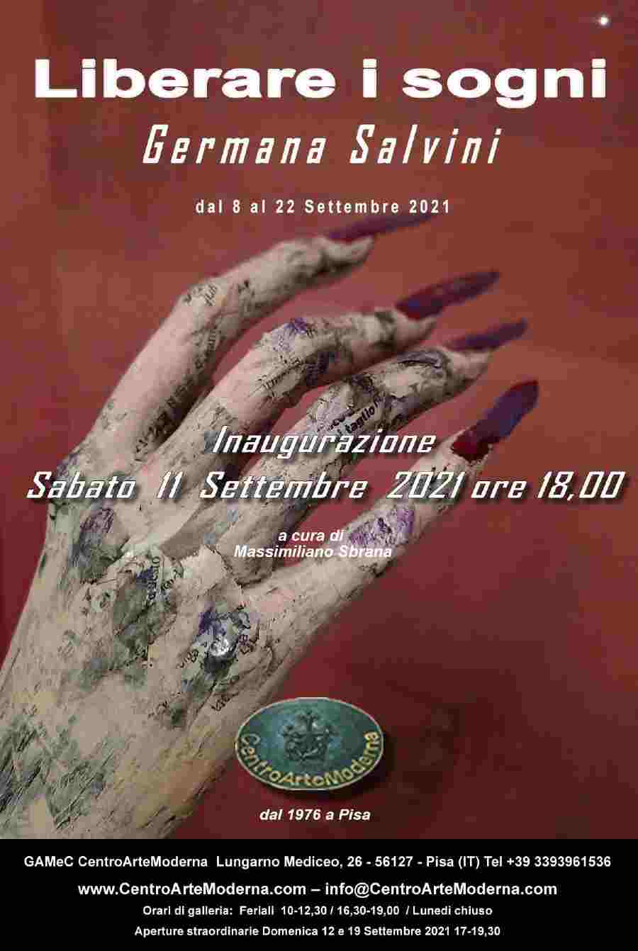 Si inaugura ufficialmente Sabato 11 ( la mostra sarà aperta al pubblico da mercoledì 8 settembre pv) Settembre 2021 alle ore 18,00 presso gli spazi espositivi della Galleria d'Arte Moderna e Contemporanea CentroArteModerna di Pisa, a cura di Massimiliano Sbrana, sul Lungarno Mediceo al n.26, la mostra personale "Liberera i sogni" della poliedrica autrice toscana Germana Salvini.