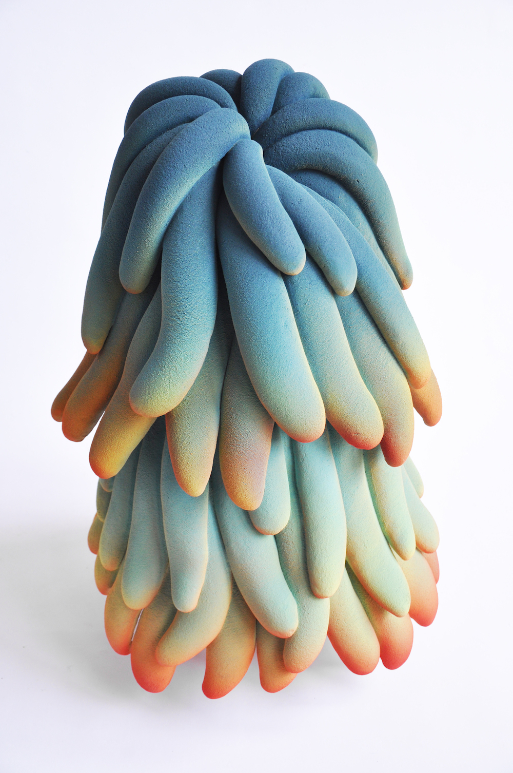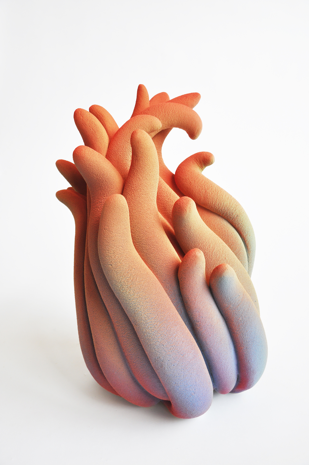 Le sculture in ceramica policroma di Claire Lindner (1982, Perpignan, Francia) danno voce a un immaginario che guarda al mondo naturale come a un insieme complesso ma profondamente connesso. Tra assonanze e rimandi continui con i fenomeni della realtà e le forme biologiche, le sue opere, giocate tra il familiare e il perturbante, mettono in scena un teatro della vita carico di desiderio e di passione, di eros e di thanatos. Anche l’uso del colore fatto dall’artista confluisce in questo orizzonte, accompagnando con leggeri trapassi cromatici la fluidità e la sinuosità delle forme ed evidenziando, con la sua opacità e porosità, l’aspetto naturale dei manufatti. In questo modo essi è come se relativizzassero la gestualità della pittura e la soggettività stessa dell’artista, per dichiarare invece una provenienza dal mondo della natura il meno possibile mediata.