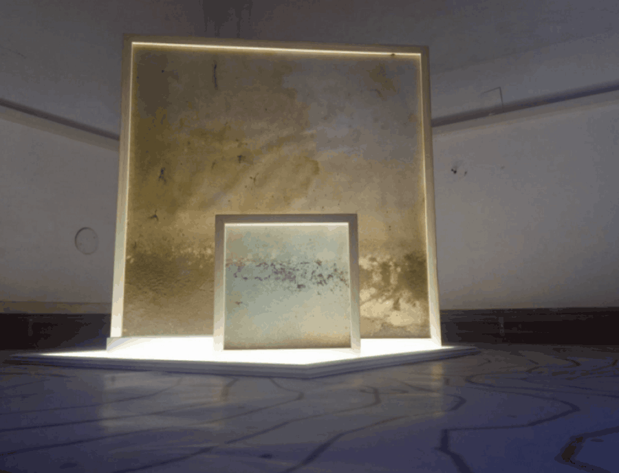 Tutto il resto lo fa la Natura che, lasciata agire indisturbata per giorni, mesi o anni sulle superfici delle naturografie, agisce come un pittore su una tela bianca. Si assiste allora alla creazione di un’opera d’arte “viva” che non rappresenta il paesaggio, ma è il paesaggio stesso, per quel tempo e su quel supporto scelto dall’artista a tal fine. Roberto ci consegna quasi una “geografia del profondo”, dove elemento paesaggistico ed elemento fisico/chimico, in una incomprensibile e portentosa specularità, finiscono per disegnare quello che è il profilo del mondo.