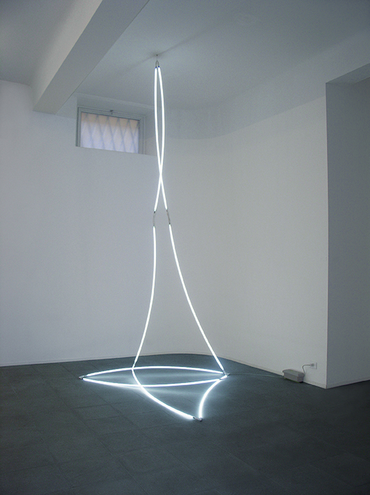 Il percorso espositivo si articola su entrambi i piani della galleria. Nella prima sala del piano superiore sono presenti opere di Carlo Ciussi, Gianni Colombo, Philippe Decrauzat, Bruno Querci, Nelio Sonego e Elisabeth Vary; in modi assai diversi fra loro - tramite la superficie pittorica, per una costruzione aggettante, o scultorea in senso lato - si appropriano sia dello spazio fisico che mentale. La sala espositiva successiva, in continuità con la precedente, mette in dialogo opere di Gianni Asdrubali, Arcangelo Sassolino e David Tremlett. Seguono nelle sale adiacenti, con opere più intime, Rodolfo Aricò, Francesco Candeloro, Lesley Foxcroft, Salvatore Scarpitta, Günter Umberg e Grazia Varisco, dando luogo a un passaggio riflessivo e invitando a un avvicinamento attento. L’opera di Riccardo De Marchi esposta sulla parete all’ingresso fa da cerniera fra i momenti della visita. Al piano inferiore sono presenti lavori caratterizzati da spinte spaziali, prevalentemente verticali, in Dadamaino, François Morellet, Mario Nigro, Niele Toroni e Michel Verjux, o longitudinali, come in Alan Charlton. L’opera di Pino Pinelli sintetizza in un certo modo le due direzioni attraverso una disseminazione ellittica.