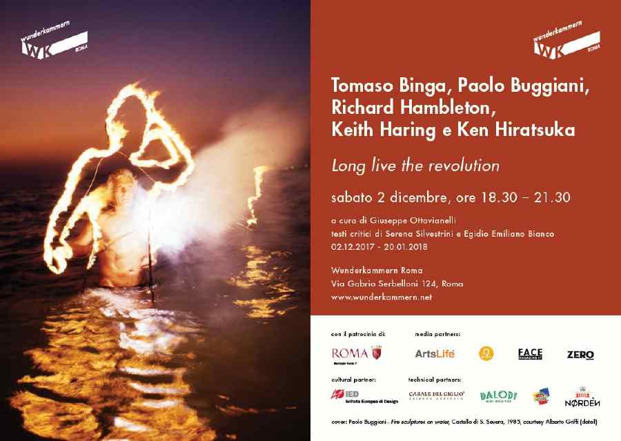 Art revolution: così recita il motto che Paolo Buggiani ha fatto suo fino a imprimerlo indelebilmente sulla pelle con un tatuaggio. Per l’artista toscano, la rivoluzione è un atto necessario per cambiare una situazione stagnante, è un gesto dirompente che ha come scopo quello di portare progresso. La ribellione, intesa come sovvertimento di un ordine statico, è il motore del lavoro di tutti gli artisti in mostra. Le opere esposte in Long live the revolution sono connesse tra di loro da uno schema che si ripete con modalità differenti: sono pensate per stupire lo spettatore, sorprenderlo per catturarne l’attenzione fino a condurlo alla riflessione e, in maniera auspicabile, a una sentita e profonda consapevolezza della necessità di un cambiamento. Questo è presente nelle performance newyorkesi di Buggiani, tra le quali si ricordano quelle in cui l’artista, travestito da Icaro, pattinava tra le automobili nel traffico provocando lo stupore (e talvolta l’ira) dei conducenti, oppure in quelle di Binga, volte a scardinare gli odiosi aspetti del patriarcato saldamente radicati nella cultura italiana - e non solo – attraverso l’uso del suo corpo come strumento tramite tra le parole recitate e gli spettatori coinvolti; negli interventi pregni di leggibili messaggi sociopolitici fatti da Keith Haring sui cartelloni pubblicitari nella metropolitana di New York i da Keith Haring sui cartelloni pubblicitari nella metropolitana di New York. Nella stessa metropoli, le ombre urbane di Hambleton coglievano di sorpresa i passanti in angoli inaspettati delle strade. La sensazione di “rivoluzione necessaria” si avverte anche nelle linee infinite che sembrano non interrompersi mai di Hiratsuka, quasi a volere racchiudere al loro interno l’umanità intera senza distinzione di sesso, etnia o religione, unendo gli esseri umani in un’unica forma di comunicazione universale. In mostra opere storiche esposte insieme a lavori più recenti.