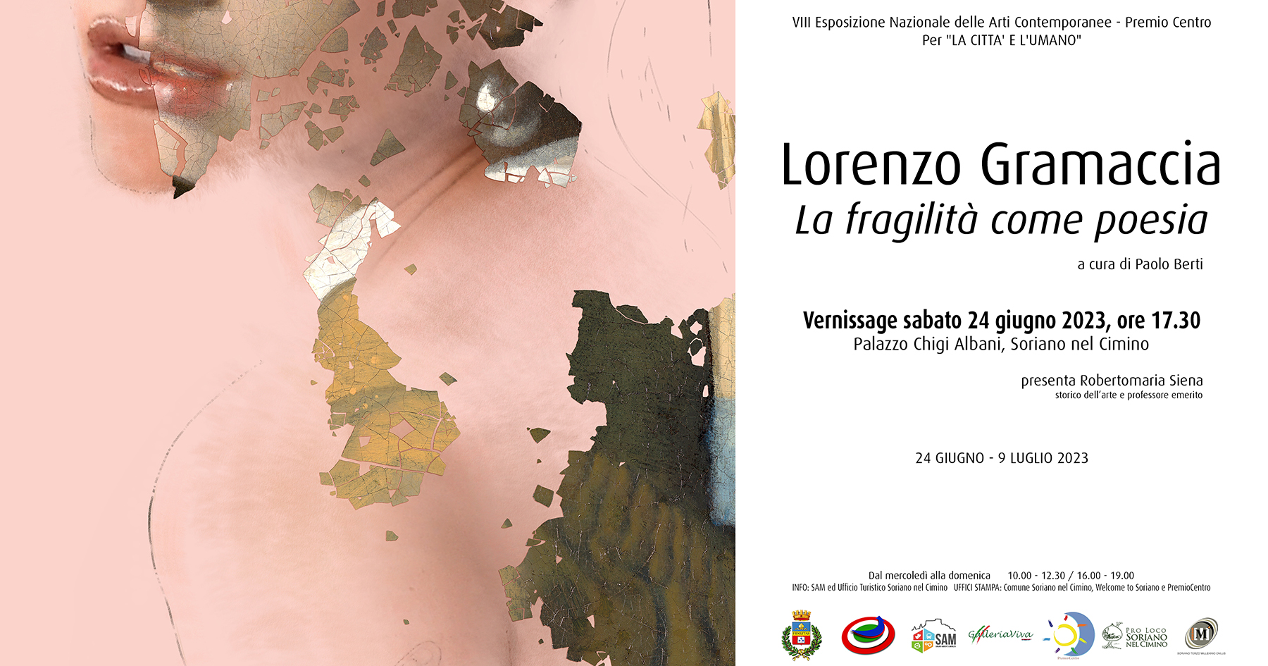 Il 24 giugno si apre ufficialmente l'VIII Esposizione nazionale delle arti contemporanee – Premio Centro 2023 , presso la Sala delle colonne di Palazzo Chigi Albani, a Soriano nel Cimino, con la Mostra Personale, in tema con “la città e l'umano”, di Lorenzo Gramaccia, giovane pittore figurativo italiano. Sarà introdotta dal curatore , l'artista Paolo Berti e vedrà la partecipazione del Prof.Siena, professore emerito di Storia dell'arte presso l'Accademia di BA di Via Ripetta a Roma, delle autorità amministrative sorianesi e di tanti amici e colleghi artisti.