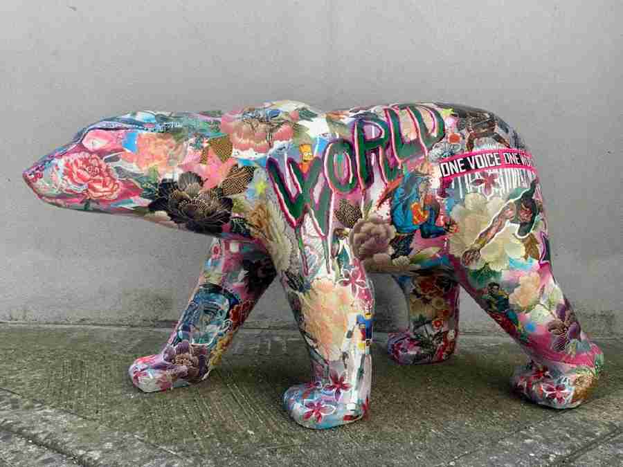 Non importa se la scultura è rappresentata da un cane, da un coniglio, da un panda, da un gorilla, da un orso, ognuno di loro esprime, essendo animale lo stesso pensiero: la strumentalizzazione dell’uomo verso la natura che mette a rischio la loro sopravvivenza.