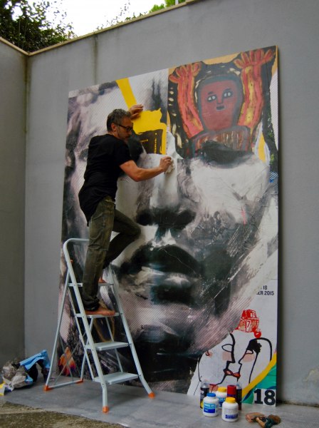 L’artista strappa i manifesti dai muri, li riporta direttamente sulla tela o sulla scultura e una volta incollati sul supporto questi vengono nuovamente lavorati dall’autore che grazie alla sua manipolazione li restituisce a nuova vita, trasformandoli in opere d’arte.
