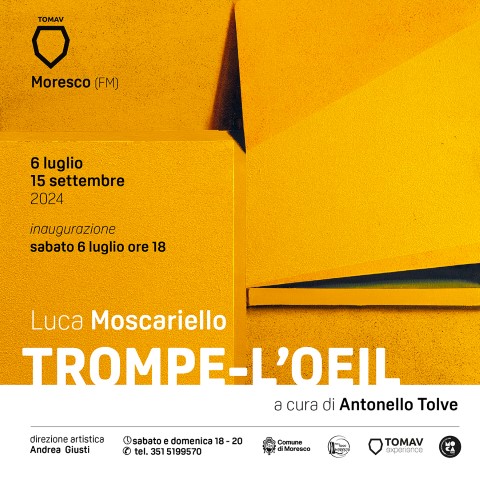Il TOMAV – Torre di Moresco Centro Arti Visive è lieto di annunciare Trompe-l’œil, personale di Luca Moscariello che si terrà dal 06 luglio al 15 settembre 2024 in cui l’artista propone una nuova serie di lavori sull’incertezza percettologica offerta dall’immagine.