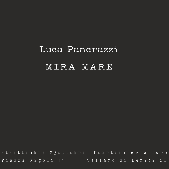 “Il margine per l’errore è inevitabile e al tempo stesso previsto e inseguito dall’artista. La sua presenza è la testimonianza di una sfida: così si manifesta nel tentativo insistito di Mira (una declinazione del verbo ‘sparire’, che si altera poi in ‘sparare’, scritta con i pallini sparati da una carabina su una tela). L’oscillazione dell’errore attorno all’idea iniziale, e in concorrenza con la volontà dell’autore, garantisce “l’apparizione unica di una lontananza, per quanto possa essere vicina”2 con cui Walter Benjamin definiva l’aura, una parusia che qui è priva di sacralità e si tesse come un “singolare intreccio di spazio e di tempo”3 mantenuto in vita nel passaggio dell’arte.” (tratto da Luca Pancrazzi, un passo dopo l’altro, di Pietro Gaglianò, Assab One 2014)