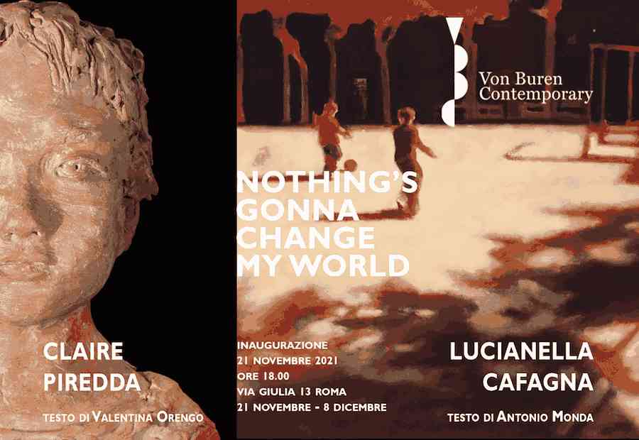 Domenica 21 novembre 2021 Von Buren Contemporary presenta la mostra nothing’s gonna change my world con le opere dell’artista romana Lucianella Cafagna e della scultrice italo-canadese Claire Piredda, a cura di Michele von Büren e con i testi di Antonio Monda e Valentina Orengo.